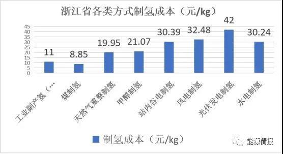 圖 7 浙江省各類原料成本測算制氫成本比較