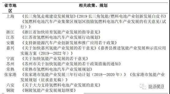 持續(xù)加快推進(jìn)氫能發(fā)展是推動長三角地區(qū)能源供給側(cè)結(jié)構(gòu)性改革的重大戰(zhàn)略舉措,也是落實推進(jìn)長三角區(qū)域一體化戰(zhàn)略、打造世界級先進(jìn)制造集群的重要突破口。長三角地區(qū)對推動氫能發(fā)展已達(dá)成基本共識,紛紛出臺了相關(guān)政策規(guī)劃,如表 4 所示。