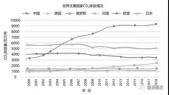圖 3 2000—2018 年世界主要國家 CO2排放情況