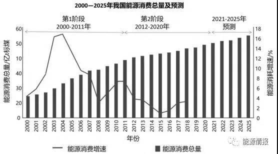 圖 2 2000—2025 年我國能源消費總量及增速變化