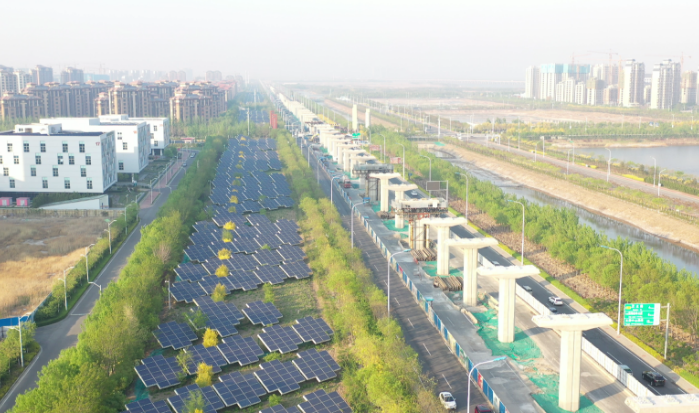 天津中新生態(tài)城中央大道的光伏發(fā)電板。國網(wǎng)天津電力供圖