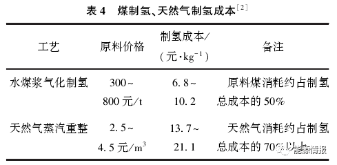 化石能源制氫技術(shù)成熟、規(guī)模大、成本低(見(jiàn)表4)。國(guó)內(nèi)現(xiàn)有工業(yè)制氫產(chǎn)能為2500萬(wàn)t/a,氫氣來(lái)源構(gòu)成主要是煤制氫、天然氣制氫、石油制氫、工業(yè)副產(chǎn)氫以及電解水制氫,占比分別是40%、12%、12%、32%和4%。在氫能及氫燃料電池車(chē)產(chǎn)業(yè)發(fā)展初期,化石能源制氫以及工業(yè)副產(chǎn)氫是低成本氫燃料的主要來(lái)源,有利于推動(dòng)產(chǎn)業(yè)發(fā)展。但化石能源制氫CO2排放量大,利用可再生能源制取低成本氫氣是業(yè)界一直瞄準(zhǔn)的方向和攻關(guān)重點(diǎn),最終目標(biāo)是氫氣價(jià)格與化石燃料價(jià)格持平。