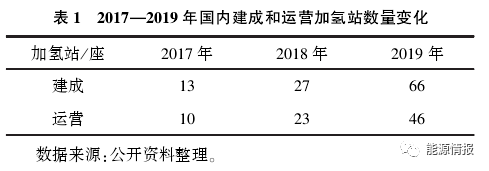 國(guó)內(nèi)將氫能定位戰(zhàn)略能源技術(shù),政策利好逐步釋放。2019年氫能首次被寫(xiě)入政府工作報(bào)告,2020年《中華人民共和國(guó)能源法(征求意見(jiàn)稿)》第一次將氫能列為能源范疇,同年氫能納入年度國(guó)民經(jīng)濟(jì)和社會(huì)發(fā)展計(jì)劃,并啟動(dòng)燃料電池汽車(chē)示范推廣及國(guó)家氫能產(chǎn)業(yè)發(fā)展戰(zhàn)略規(guī)劃編制。國(guó)家層面從立法、頂層設(shè)計(jì)、示范應(yīng)用等層面給予氫能產(chǎn)業(yè)持續(xù)的政策支持,統(tǒng)籌規(guī)劃、引導(dǎo)、規(guī)范氫能產(chǎn)業(yè)健康持續(xù)發(fā)展。在持續(xù)穩(wěn)定的政策環(huán)境下,社會(huì)資本、產(chǎn)業(yè)鏈上下游相關(guān)企業(yè)、地方政府等多因素疊加催化下,近幾年國(guó)內(nèi)以加氫站為代表的氫能基礎(chǔ)設(shè)施(表1),制-儲(chǔ)-運(yùn)-用產(chǎn)業(yè)鏈關(guān)鍵技術(shù)與裝備得到發(fā)展,初步形成珠三角、長(zhǎng)三角、京津冀等氫能產(chǎn)業(yè)熱點(diǎn)區(qū)域,目前產(chǎn)業(yè)整體處于技術(shù)研究與示范應(yīng)用階段。根據(jù)公開(kāi)資料整理,目前國(guó)內(nèi)氫燃料汽車(chē)超過(guò)6000輛,在運(yùn)營(yíng)加氫站46座?!吨袊?guó)氫能源及燃料電池產(chǎn)業(yè)白皮書(shū)(2019)》預(yù)測(cè),2035年氫能占國(guó)內(nèi)終端能源總量5.9%,加氫站數(shù)量1500座,燃料電池車(chē)保有量130萬(wàn)輛。
