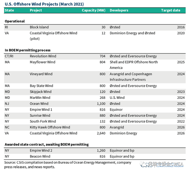到2020年底,美國海上風(fēng)電裝機(jī)容量?jī)H占世界的0.1%(而陸上風(fēng)電裝機(jī)容量占到了全球17%),各種海上風(fēng)電項(xiàng)目在緩慢的監(jiān)管過程中陷入困境,使美國遠(yuǎn)遠(yuǎn)落后于中國和歐洲國家?!?】