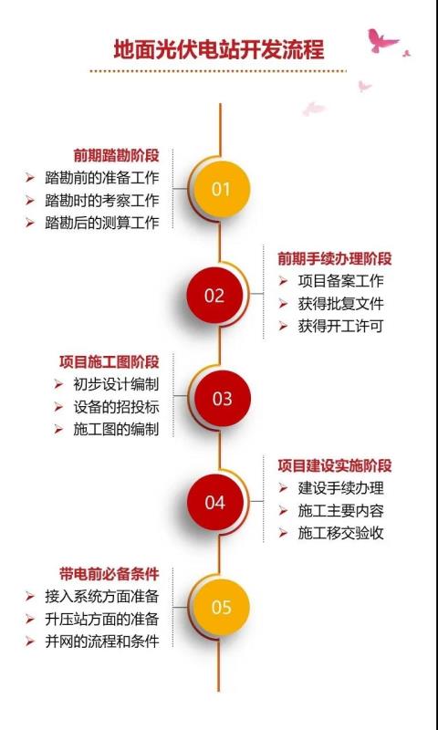 根據(jù)國家能源局印發(fā)《光伏電站項目管理暫行辦法》,國家對大型地面并網(wǎng)光伏電站項目均實行備案管理。以下是國家能源集團對大型地面光伏電站開發(fā)流程的詳細講解: