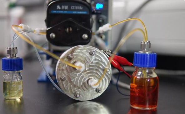 水系液流電池是一種新穎的儲能技術,由兩種處于溶液態(tài)的電解液通過離子交換來產(chǎn)生電能。相比傳統(tǒng)鋰離子電池,液流電池的優(yōu)勢在于安全、電量輸出功率大、設計靈活,適合用于風能、太陽能等再生能源的電網(wǎng)儲能裝置,以及可快速換電的電動交通工具等。然而,液流電池的能量密度低且成本高,較難應用于大型電網(wǎng)儲能技術。