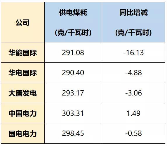 2020年五大發(fā)電央企主要上市公司供電煤耗情況