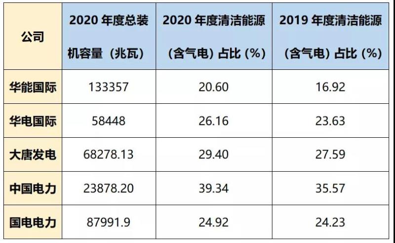 電力行業(yè)如今正加快低碳轉(zhuǎn)型。從清潔能源裝機(jī)比例(含氣電)上看,中國(guó)電力比例最大,為39.34%,上一年度清潔能源裝機(jī)占比為35.57%。大唐發(fā)電、國(guó)電電力、華電國(guó)際、華能國(guó)際清潔能源裝機(jī)依次為29.4%、26%、24.92%和20.6%,均高于上一年度。