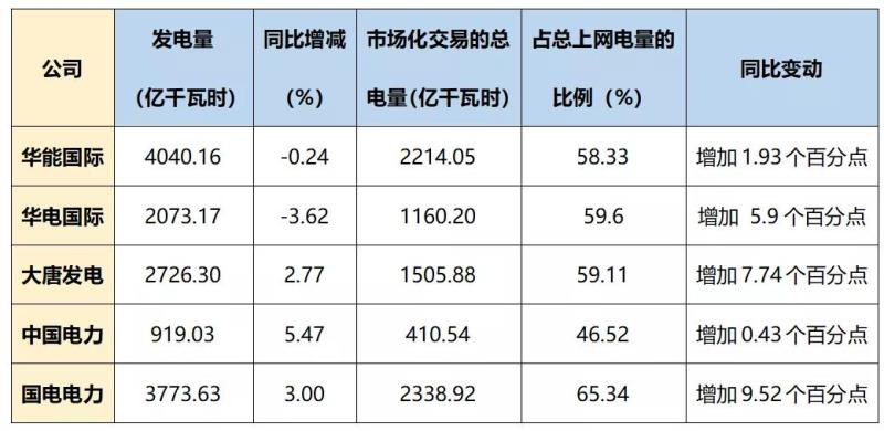 2020年五大發(fā)電央企主要上市公司發(fā)電業(yè)務(wù)情況
