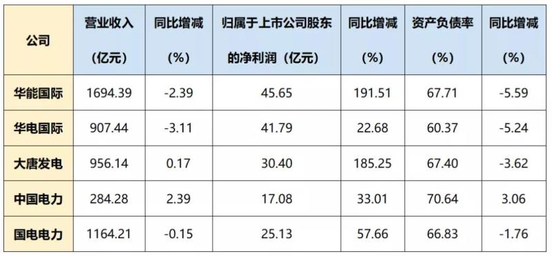 資產(chǎn)負(fù)債率方面,華能國(guó)際、華電國(guó)際、大唐發(fā)電、國(guó)電電力分別減少5.59%、5.24%、3.62%、1.76%,中國(guó)電力資產(chǎn)負(fù)債率增加3.06%。