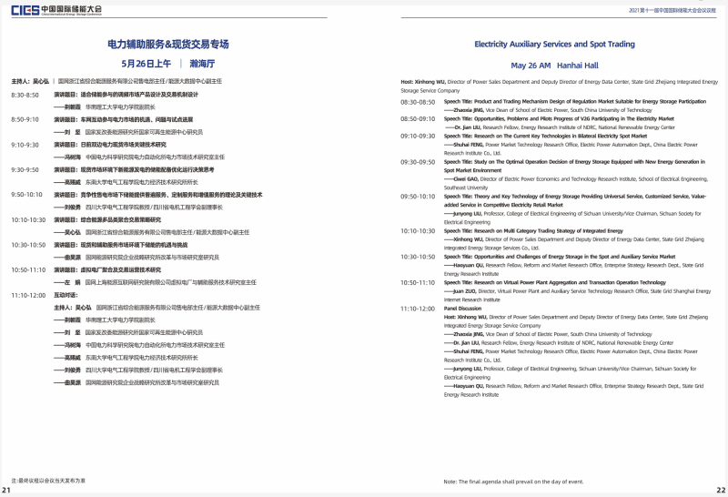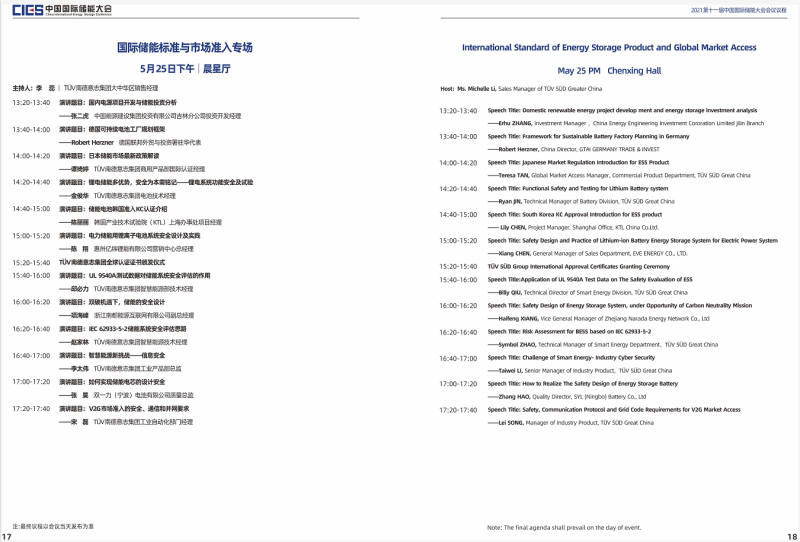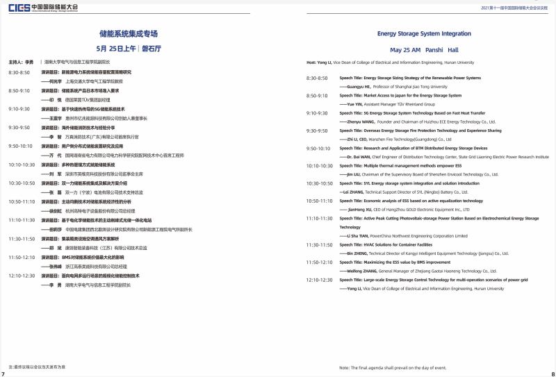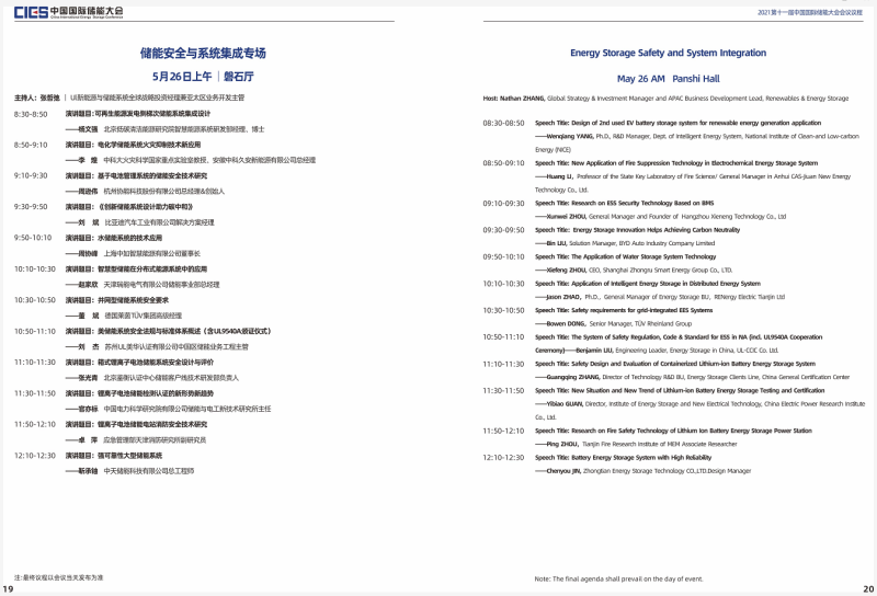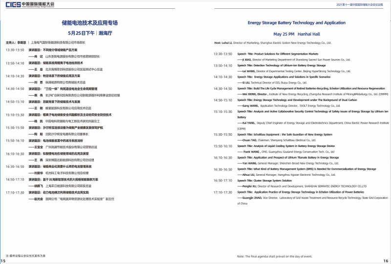 本屆大會將設(shè)置第十一屆中國國際儲能大會開幕式及“雙碳”目標(biāo)下儲能產(chǎn)業(yè)發(fā)展新路徑專場、新型電力系統(tǒng)與儲能整體解決方案專場、高比例可再生能源與儲能產(chǎn)業(yè)協(xié)調(diào)發(fā)展路徑專場、儲能系統(tǒng)集成專場、儲能安全與檢測認(rèn)證專場、儲能電池技術(shù)與應(yīng)用專場、儲能電站規(guī)劃與設(shè)計(jì)專場、國際儲能標(biāo)準(zhǔn)與市場準(zhǔn)入專場、電力輔助服務(wù)及現(xiàn)貨交易專場、儲能電站并網(wǎng)與調(diào)度專場、儲能安全與系統(tǒng)集成專場、新型儲能技術(shù)及應(yīng)用專場、綜合能源服務(wù)與車電互聯(lián)專場、氫儲能與燃料電池專場等14個(gè)專場論壇。