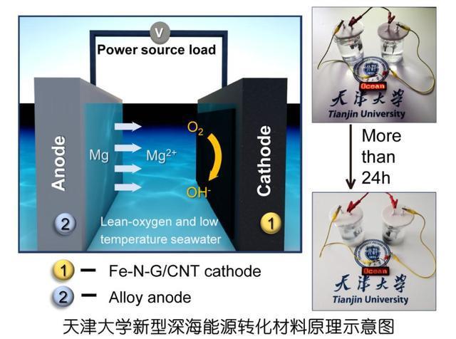 天津大學(xué)海洋學(xué)院、化工學(xué)院聯(lián)合團(tuán)隊(duì)提出了“面向深海貧氧環(huán)境海水電池高效親氧催化劑”的設(shè)計(jì)策略,他們通過微波合成法制備出一種新型單原子催化劑。實(shí)驗(yàn)結(jié)果顯示,這種新材料能夠在貧氧環(huán)境下進(jìn)行高效氧還原催化,從而產(chǎn)生電能。用這種新材料制造的海水電池能夠在水下超千米的深海環(huán)境中穩(wěn)定供電。