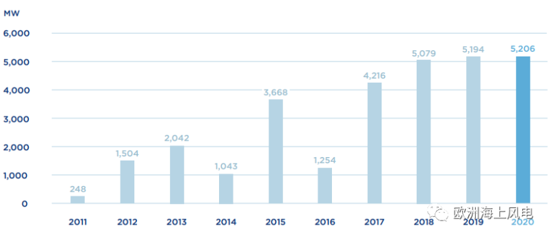 根據(jù)世界海上風(fēng)電論壇(WFO)最新發(fā)布的《 2020年全球海上風(fēng)電報(bào)告》,2020年海上風(fēng)電新增裝機(jī)容量為5206兆瓦,超過(guò)2019年的5194兆瓦(注:統(tǒng)計(jì)口徑為全部安裝并首臺(tái)或首批機(jī)組并網(wǎng)的海上風(fēng)場(chǎng))。