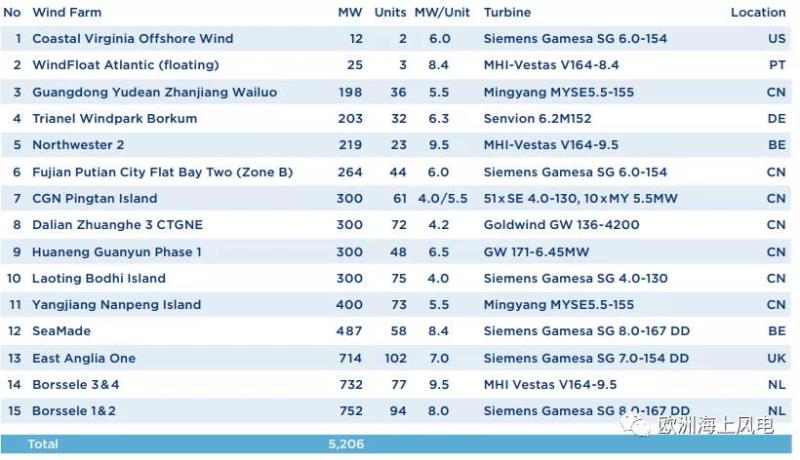 15個(gè)新增風(fēng)場(chǎng)主要來(lái)自歐洲和中國(guó),其中最大的兩個(gè)風(fēng)場(chǎng)都在荷蘭投產(chǎn);