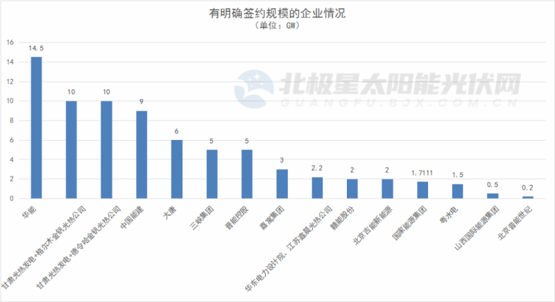 青海省以34GW一體化簽約總規(guī)模遙遙領(lǐng)先。1月19日,華能集團(tuán)青海分公司與格爾木市政府簽署10GW的大型綜合能源基地建設(shè)戰(zhàn)略合作框架協(xié)議,雙方“十四五”期間將在能源投資、科技創(chuàng)新、電力外送等方面開展合作;1月末到2月初,甘肅光熱發(fā)電兩個(gè)10GW風(fēng)光熱儲(chǔ)一體化清潔能源發(fā)電基地相繼落戶海西州柴達(dá)木循環(huán)經(jīng)濟(jì)試驗(yàn)區(qū)、格爾木市;4月底,中國能建4GW風(fēng)光儲(chǔ)氫一體化項(xiàng)目簽約海西蒙古族藏族自治州。