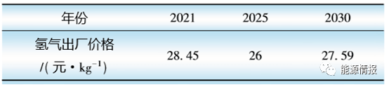 2021—2030年投資風(fēng)電制氫,在滿足8%內(nèi)部收益率下,各投資年份最低氫氣出廠價格如表3所示。