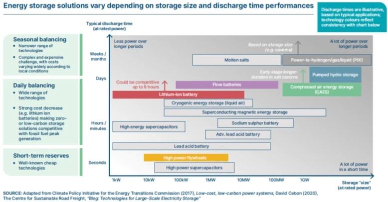 展望2050年的凈零能源系統(tǒng),國(guó)際機(jī)構(gòu)能源轉(zhuǎn)型委員會(huì)在其規(guī)劃文件中預(yù)計(jì),其中三種儲(chǔ)能技術(shù)可能贏得更多的成功,盡管不排除其他儲(chǔ)能技術(shù),其最佳組合將取決于個(gè)別用例、市場(chǎng)和其他情況。