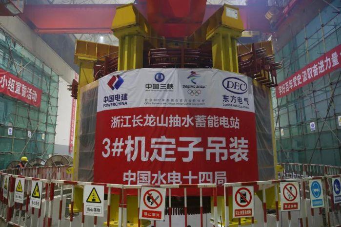 5月17日下午,三峽集團(tuán)浙江長龍山抽水蓄能電站3號(hào)機(jī)組定子順利吊裝。至此,該工程6臺(tái)機(jī)組已有3臺(tái)完成定子吊裝,標(biāo)志著電站機(jī)組安裝工作步入快車道。
