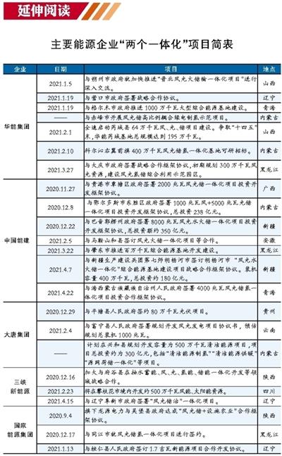 據(jù)了解,從年初至今,已經(jīng)有多家企業(yè)與地方政府簽署“風光儲、風光水火儲”等一體化項目。從投資地點來說,土地資源、光照資源更為充足的“三北”地區(qū)深受企業(yè)喜愛。