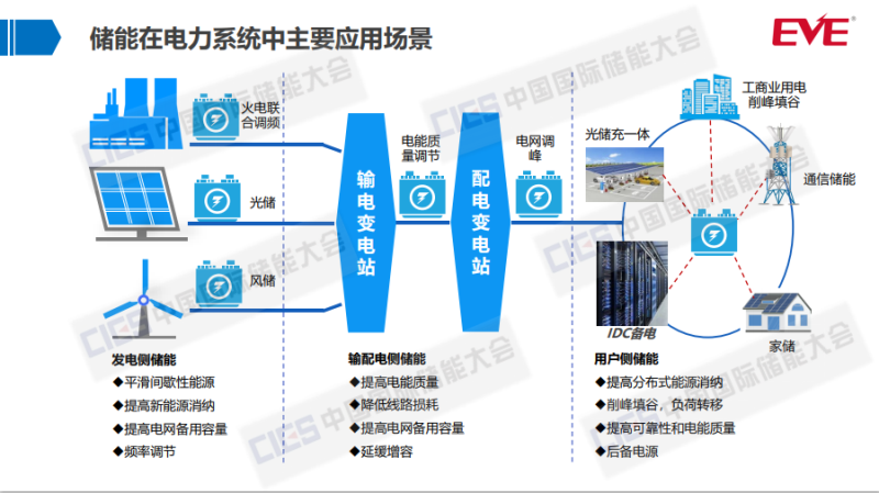 我們的應用主要分為幾大板塊:1.電力儲能,是電網(wǎng)側相關的產品應用,主要從發(fā)電、輸配電、用戶側進行產品布局;2.通信儲能,在傳統(tǒng)的通信行業(yè)備電或者循環(huán)型的應用;3.家庭儲能,以及在IDC備電這一塊的應用場景。