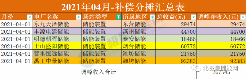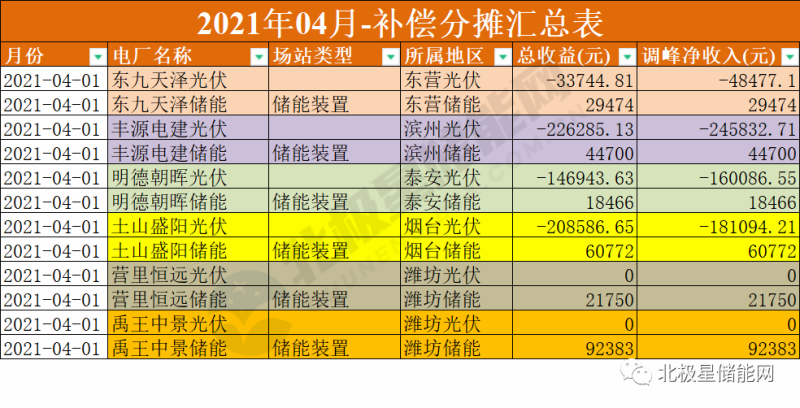 據(jù)了解,山東省2021年1-4月風(fēng)電光伏項目每月的調(diào)峰分攤補償總額分別為,1月1605.15萬元,2月4490.37萬元,3月2282.85萬元,4月2975.2萬元。目前4月六座儲能電站獲得的收益還不到全省新能源調(diào)峰分攤總額的0.9%。