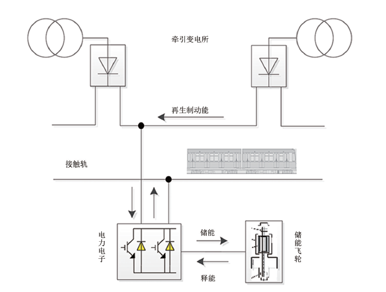 技術突破:設計了一種基于飛輪儲能陣列的直流電能循環(huán)利用系統(tǒng),可實現(xiàn)車輛進站制動能量的快速吸收和出站時的功率補償,并通過對飛輪陣列關鍵指標進行論證,確定了飛輪并聯(lián)方案和容量配置。