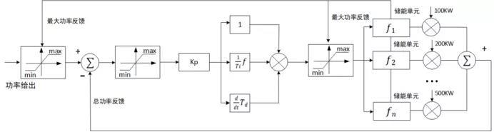 群閉環(huán)自控式大規(guī)模儲能由多個儲能執(zhí)行單元組成,儲能單元的可輸出功率受電池的SOC、最高電圧、最低電壓、最高溫度、最低溫度影響,可用輸出功率會在運行過程中發(fā)生突變(尤其充放電末端),大規(guī)模儲能系統(tǒng)要接受調(diào)度的調(diào)峰調(diào)頻響應,在儲能單元充放電末端或故障響應式,儲能功率響應速度就會存在影響。