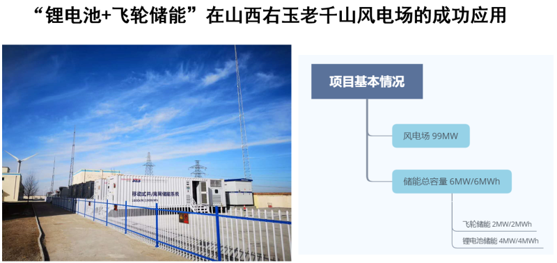 (圖示)這是飛輪儲(chǔ)能+鋰電池儲(chǔ)能在山西右玉老千山風(fēng)電廠的一個(gè)成功應(yīng)用,是國網(wǎng)的示范項(xiàng)目,目前運(yùn)行的非常好,它在一次調(diào)頻的效果非常好。
