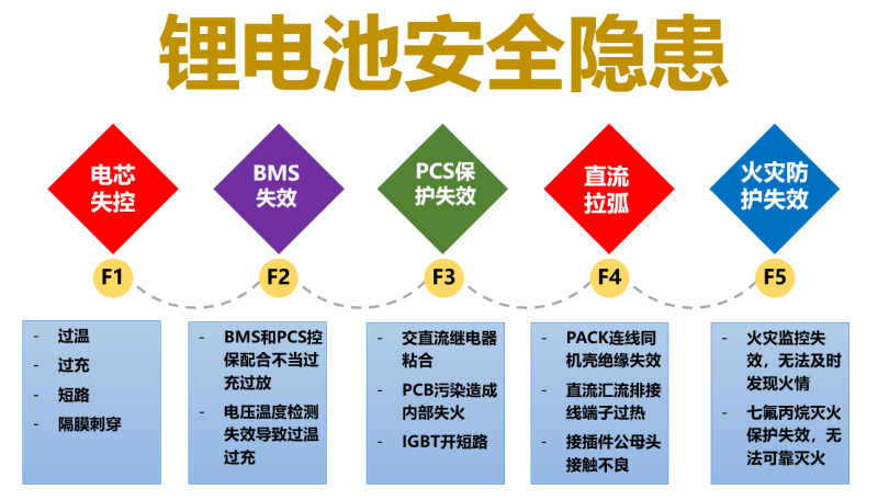集中式儲(chǔ)能,幾千顆甚至近萬顆電芯經(jīng)過串并聯(lián)后集中布置,直流匯流后集中并網(wǎng),這導(dǎo)致了很高的電芯安全性風(fēng)險(xiǎn)。因?yàn)楝F(xiàn)在的電芯不是100%不會(huì)出問題的,它在生產(chǎn)過程中比如說有百萬分之一的次品率,把幾千個(gè)、近萬個(gè)電芯放到一起以后,它大概就有1%的故障率,集中的越多,風(fēng)險(xiǎn)就越高。如果系統(tǒng)里的并流環(huán)節(jié)太多的話,又有直流拉弧的風(fēng)險(xiǎn)無法消除,最后溫度一升高就會(huì)出事故。
