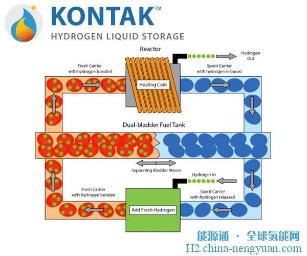 Kontak是一家位于美國西雅圖的早期技術公司,它已經(jīng)申請了一種新的儲氫技術的專利,該方法通過化學方式將氫與液體載體結合,并在需要時安全地釋放。