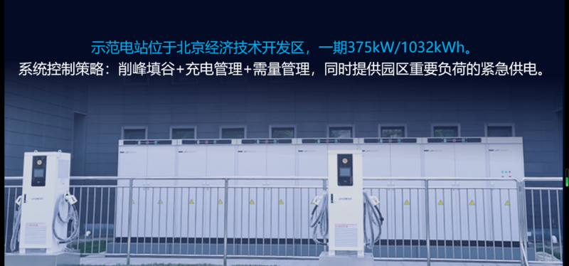 這是位于北京經(jīng)濟技術開發(fā)區(qū),實現(xiàn)了削峰填谷+充電管理+需量管理,同時提供園區(qū)重要負荷的緊急供電。