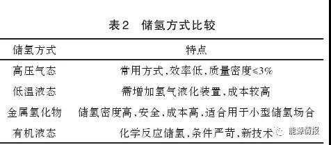 儲(chǔ)運(yùn)氫技術(shù)作為氫氣從生產(chǎn)到利用過(guò)程中的橋梁,至關(guān)重要??赏ㄟ^(guò)氫化物的生成與分解儲(chǔ)氫,或者基于物理吸附過(guò)程儲(chǔ)氫。儲(chǔ)氫方式比較如表2所示。