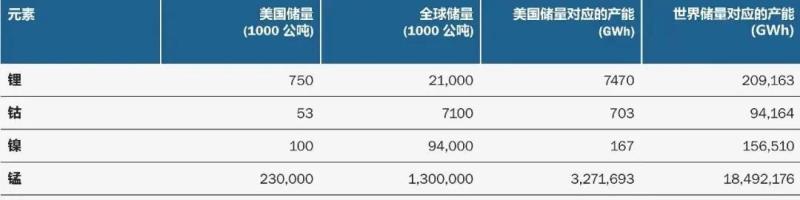 表1:美國礦產(chǎn)儲量和產(chǎn)能在全球中的占比。