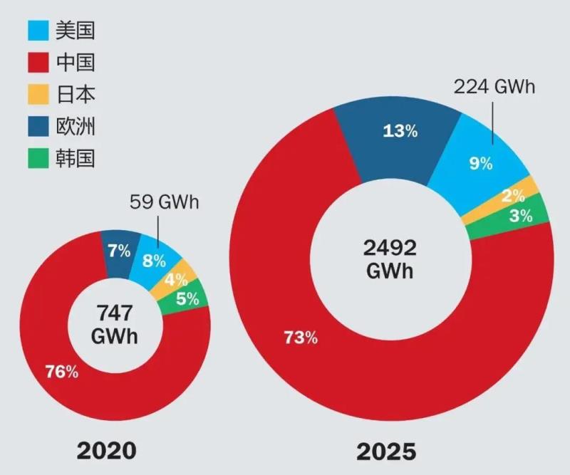 該報(bào)告指出,鋰電行業(yè)目前似乎正處于臨界點(diǎn),自2010年以來鋰電成本下降了近90%。這項(xiàng)技術(shù)正在影響全球運(yùn)輸市場,并有可能在未來幾十年重塑全球行業(yè)。預(yù)計(jì)到2025年,中國鋰電產(chǎn)能將達(dá)到1811GWh。