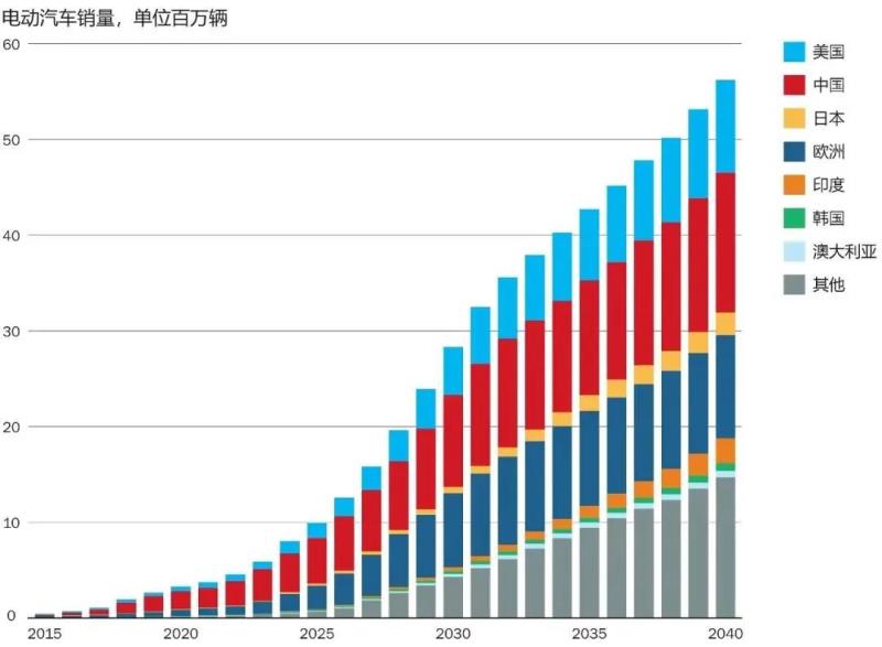 據(jù)彭博社預(yù)計(jì),2040年全球乘用電動汽車的銷量將達(dá)到5600萬輛,其中17%(約960萬輛電動汽車)將進(jìn)入美國市場(圖1)。如果彭博社預(yù)計(jì)的960萬輛電動汽車的所有電池都是在國外制造,這將產(chǎn)生大約1000億美元的進(jìn)口。占領(lǐng)這一市場對于美國汽車工業(yè)未來的生存至關(guān)重要,美國汽車工業(yè)在歷史上貢獻(xiàn)了美國國內(nèi)生產(chǎn)總值的5.5%。除電動汽車市場外,電網(wǎng)儲能市場也有望增長,彭博社預(yù)計(jì)到2040年全球儲能電站部署總量將達(dá)到1095GW以上,較2018年的9GW將會大幅增長。