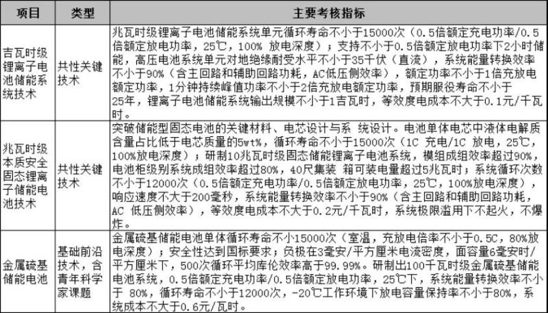 在儲(chǔ)能電池研究環(huán)節(jié),具體考核指標(biāo)如下: