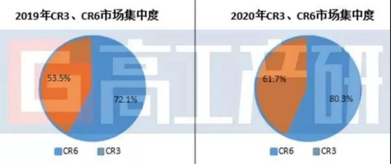 從市場(chǎng)競(jìng)爭(zhēng)格局來(lái)看, 2020年中國(guó)鋰電隔膜市場(chǎng)TOP6企業(yè)市場(chǎng)占比為80.3%,TOP3企業(yè)市場(chǎng)占比61.7%,同比均有所提升。