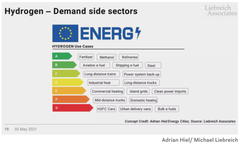 我們已經(jīng)表達了對氫能的一些懷疑,而且我們的觀點并不是孤立的。能源研究機構(gòu)彭博新能源財經(jīng)(Bloomberg New Energy Finance)的創(chuàng)始人、能源專家邁克爾?利布雷奇(Michael Liebreich)表示:“他們用電和氫氣發(fā)電,損失了50%(能源),然后用氫氣發(fā)電,又損失了25%,然后點亮了埃菲爾鐵塔——他們用電來制造氫氣,以75%的損失來制造電力——就為了能夠說他們用氫氣點亮了埃菲爾鐵塔!”