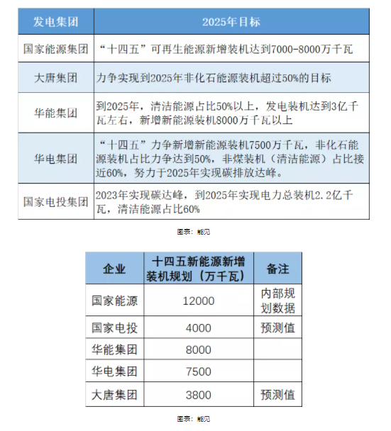 從五大發(fā)電集團(tuán)清潔能源發(fā)展競賽角度分析,清潔能源裝機占比已經(jīng)遙遙領(lǐng)先的國家電投“十四五”目標(biāo)完成壓力最小,只需要完成4000萬千瓦新能源裝機即可,是國家能源集團(tuán)和華能集團(tuán)目標(biāo)的一半。國家電投似乎并沒有必要為了爭奪項目做出“損人不利己”之事。