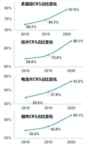 圖2:光伏產(chǎn)業(yè)前五大企業(yè)的市場占有率變化