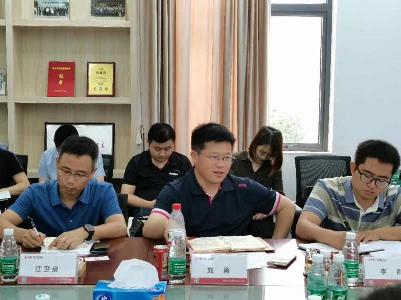 參觀結(jié)束后,梁榮斌等相關(guān)領(lǐng)導和調(diào)研團專家進行了深入交流座談,會議開始,億緯動力相關(guān)負責人重點從公司背景、主推儲能產(chǎn)品和應(yīng)用場景三個方面向?qū)<覀冏隽酥攸c介紹。