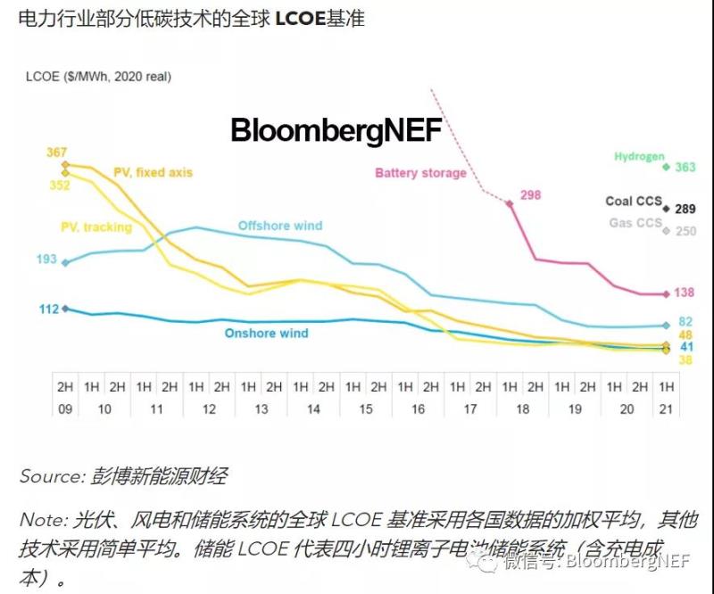 彭博新能源財經(jīng)首次將碳捕獲和封存系統(tǒng)納入煤炭和天然氣的LCOE計算中。根據(jù)對過去項目的分析,彭博新能源財經(jīng)估計,在五個關(guān)鍵地區(qū)中,搭配CCS系統(tǒng)的煤電LCOE為133到449美元/MWh,氣電LCOE為156到336美元/MWh。目前,使用綠氫的氣電LCOE為293到535美元/MWh。2021年上半年,小型核反應堆在負載跟隨模式下的LCOE為354美元/MWh,在全天運行模式下的LCOE為240美元/MWh。更多信息,請期待即將發(fā)布《LCOE亮點:氫能、CCS和小型核反應堆》