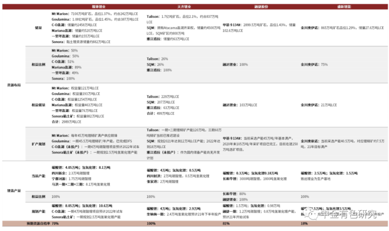 圖表65:國內(nèi)主要鋰行業(yè)標(biāo)的比較