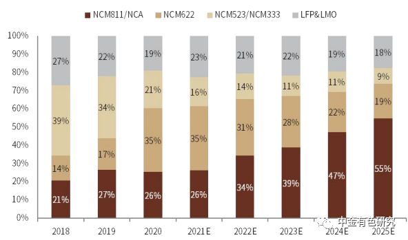 圖表62:2021-2025年全球高鎳三元占比逐步提升
