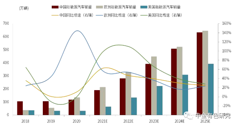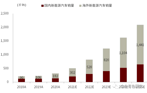 圖表3:全球新能源乘用車銷量與預(yù)測(cè)(EV+PHEV)