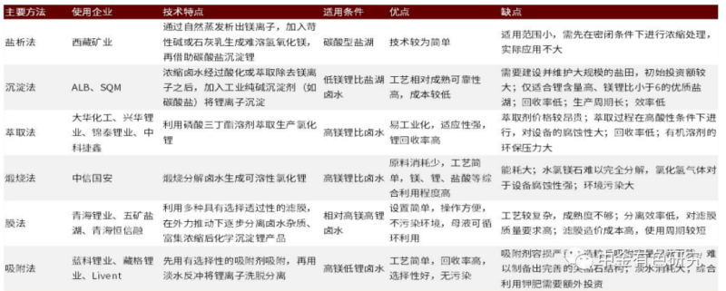 圖表44:鹽湖提鋰工藝比較
