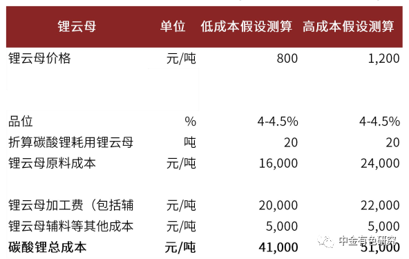 圖表38:鋰云母提鋰成本測(cè)算(不考慮副產(chǎn)品收益)