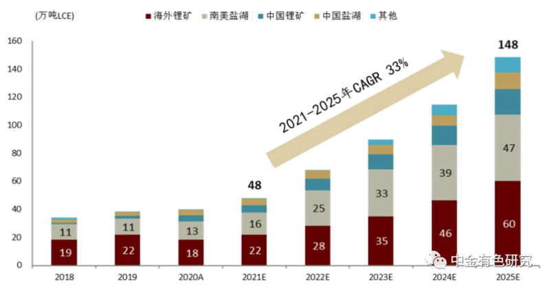 圖表23:2018-2025年全球鋰供給預(yù)測(cè)