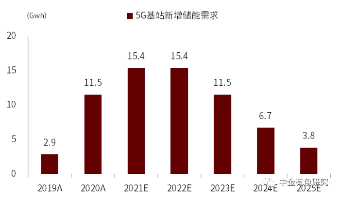 圖表20:2021-2025 年我國 5G 基站全年新增儲(chǔ)能需求