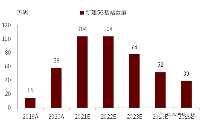圖表19:2021-2025年我國新建5G基站個(gè)數(shù)預(yù)測(cè)